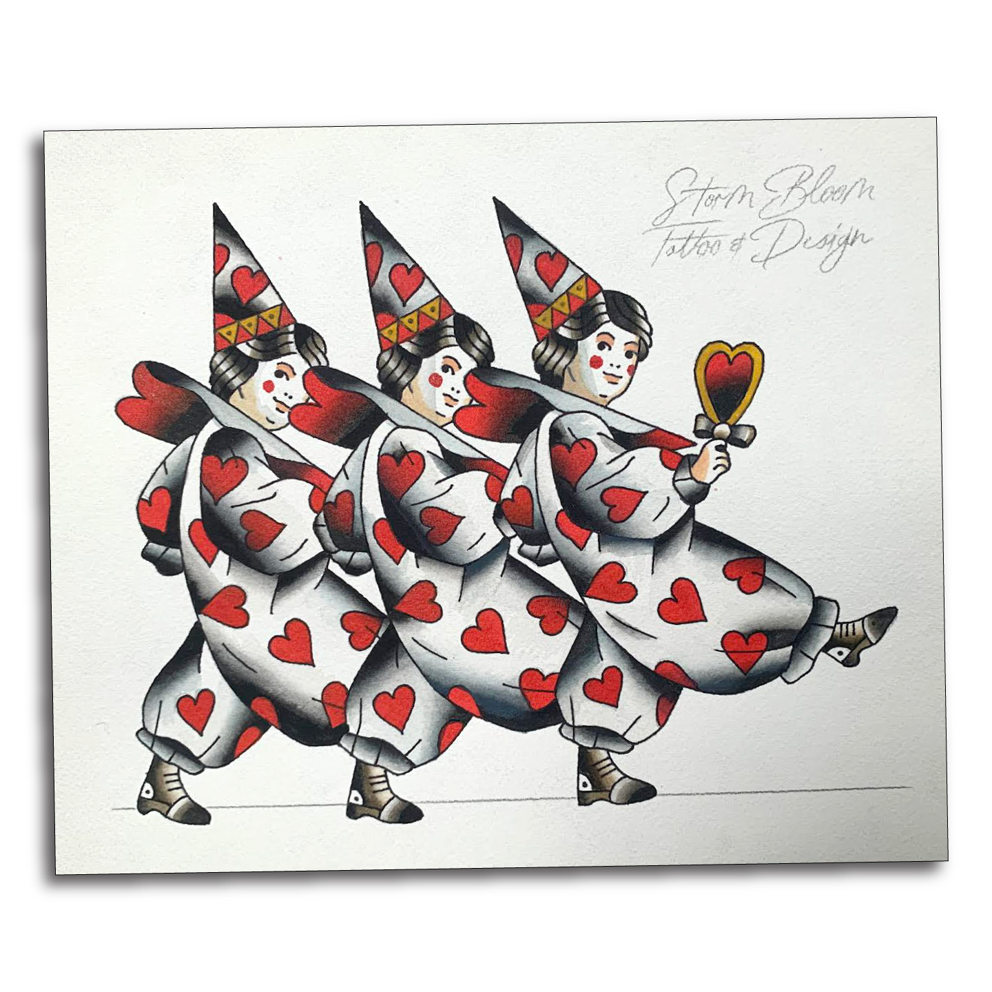 Available Works › Valentines Clowns Valentines Clowns $200.00 10.15” x 8.75” Flash Sheet. Medium: Liquid Acrylics, Sharpie Pens, Watercolor Paper 10.15” x 8.75” Flash Sheet. Medium: Liquid Acrylics, Sharpie Pens, Watercolor Paper Add To Cart Added!