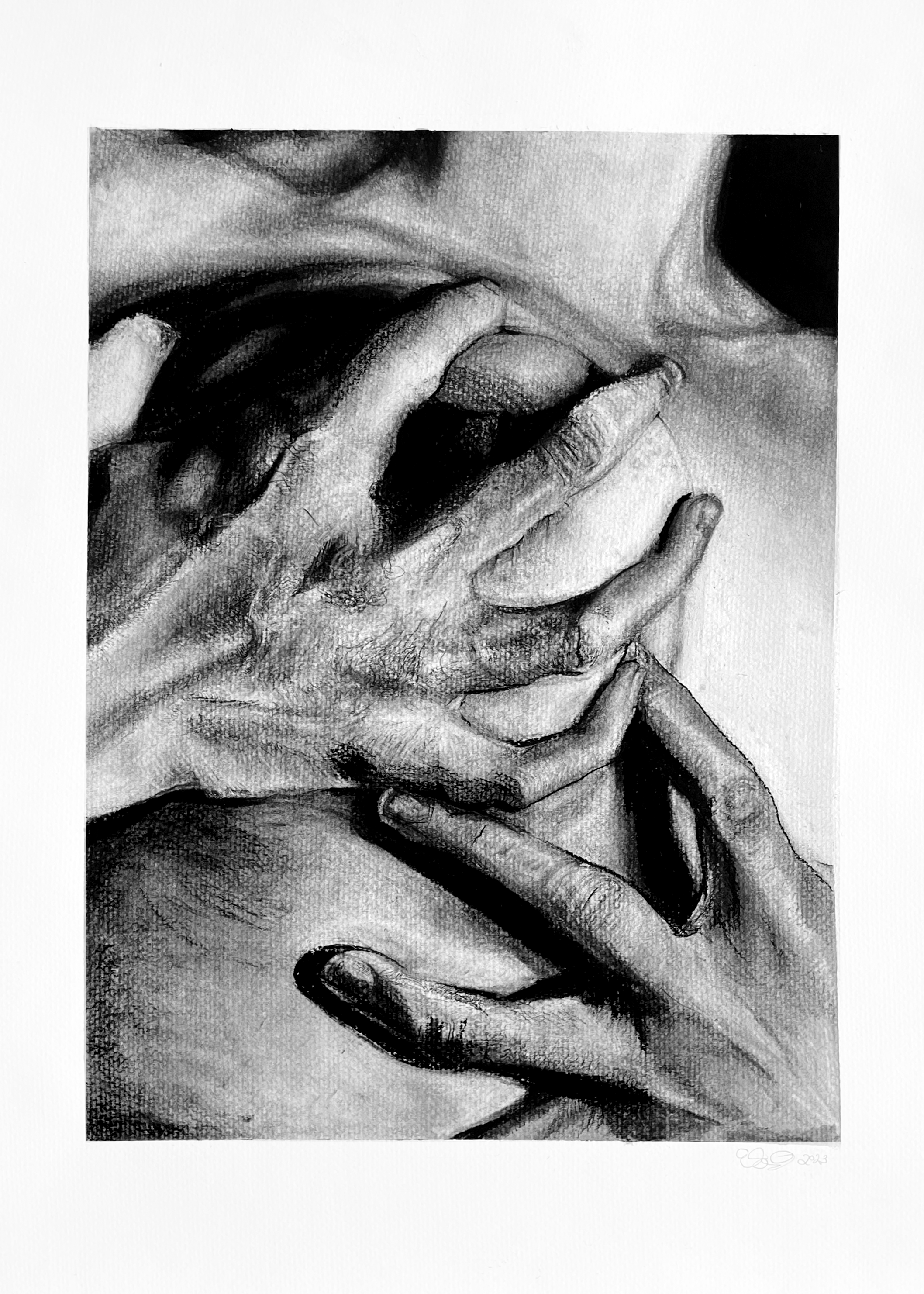 I love how the “illusion of life” and truth intertwine in abstracted realism and look to art for space to be fully present with my ideas, observations, and longings through that lens. My work often highlights the dark, and silly, details of our fleshy lives that often go unnoticed or are socially repressed.